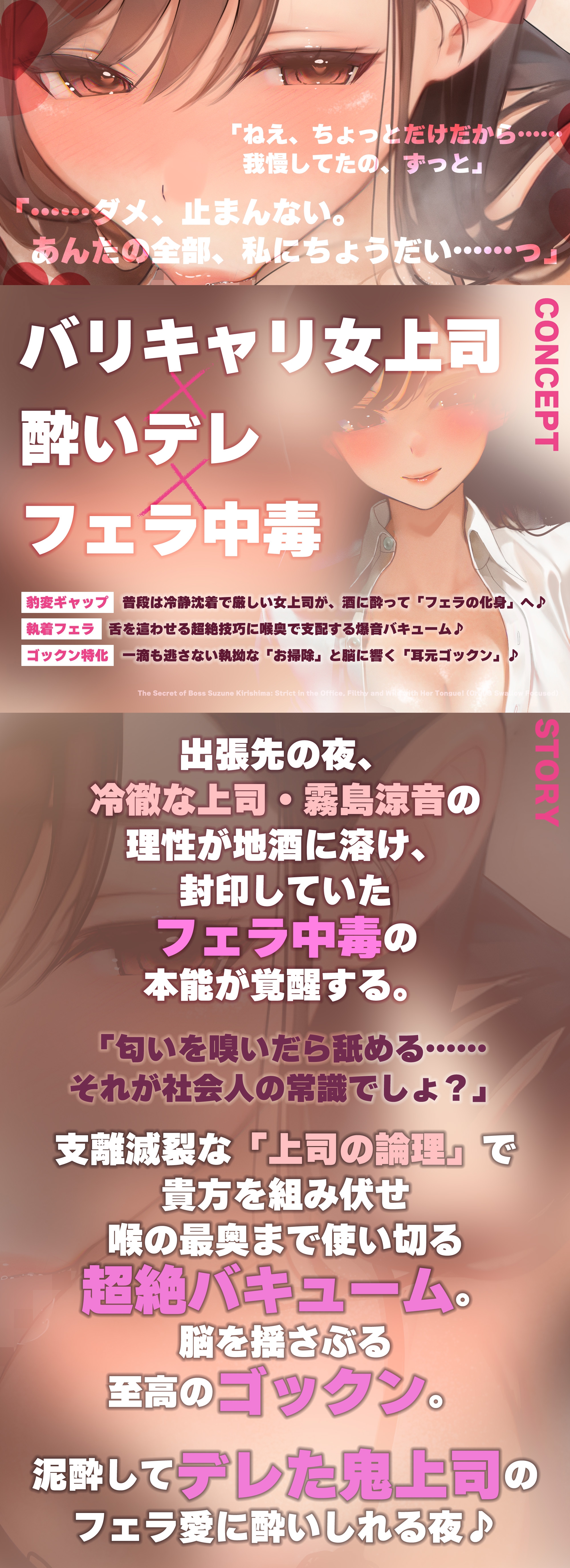 【フェラ特化】フェラ好きギャップ女子《女上司:霧島涼音》【ゴックン特化】~真面目で厳しいのにフェラは下品で過激すぎる!?~《!3大早期購入特典付!》(RJ01589172)はサークル名:生ハメ堕ち部★LACKのDLsite専売同人ボイス・ASMR作品です。