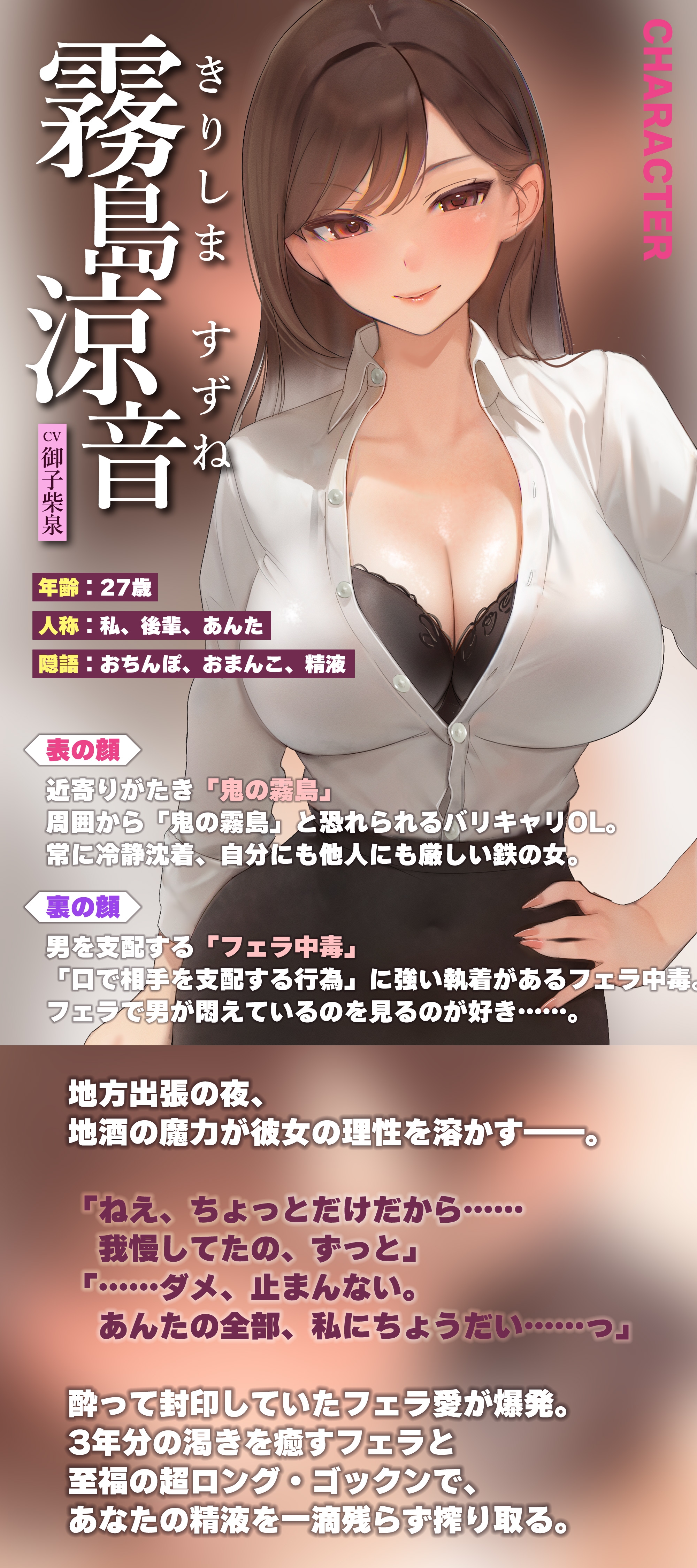 【DLsite専売ゲーム】【フェラ特化】フェラ好きギャップ女子《女上司:霧島涼音》【ゴックン特化】~真面目で厳しいのにフェラは下品で過激すぎる!?~《!3大早期購入特典付!》(RJ01589172)内容まとめ【生ハメ堕ち部★LACK】