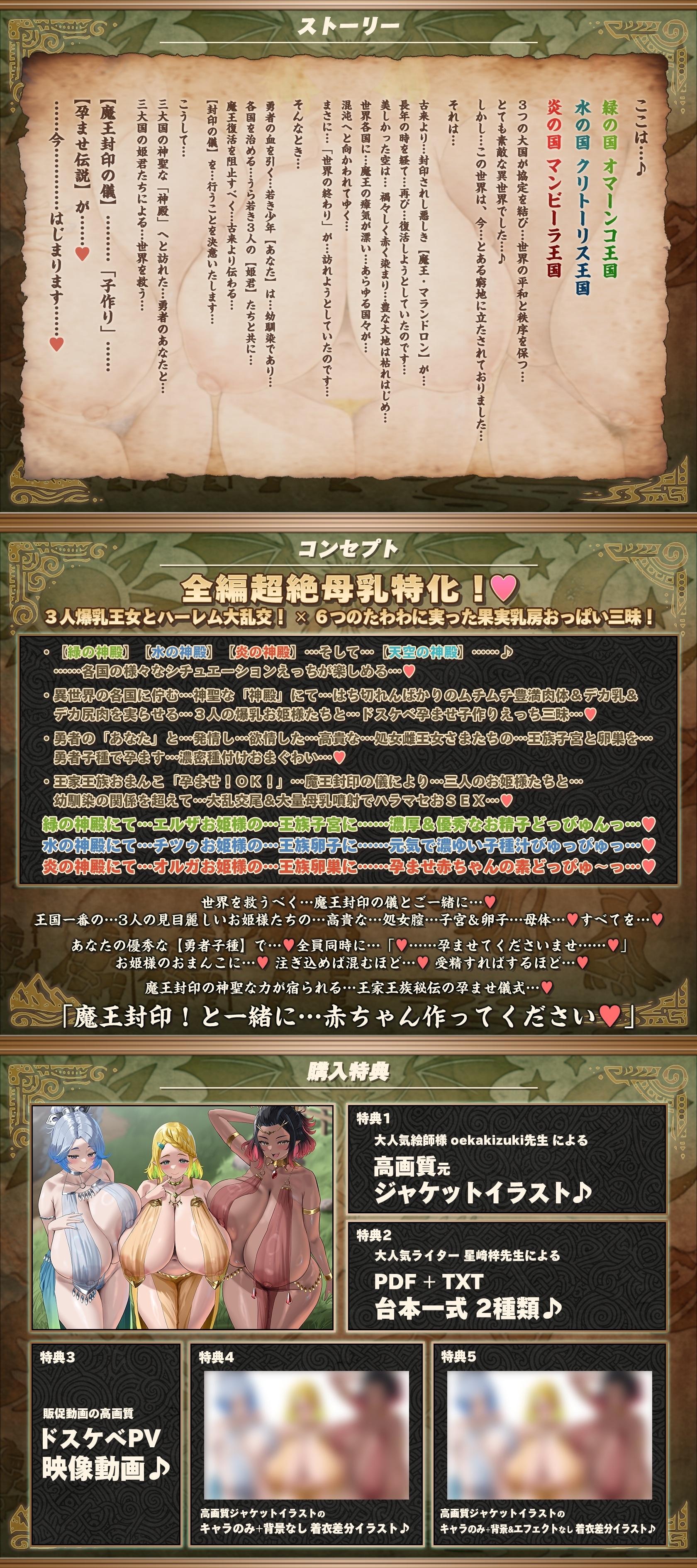 【5/5日まで 早期限定400大特典】【7時間半×3人お姫様×超絶母乳ハーレム】~孕ませ伝説~ 古の勇者のボクとドスケベ爆乳お姫様×3の…孕ませ!子作り!魔王封印伝説♪