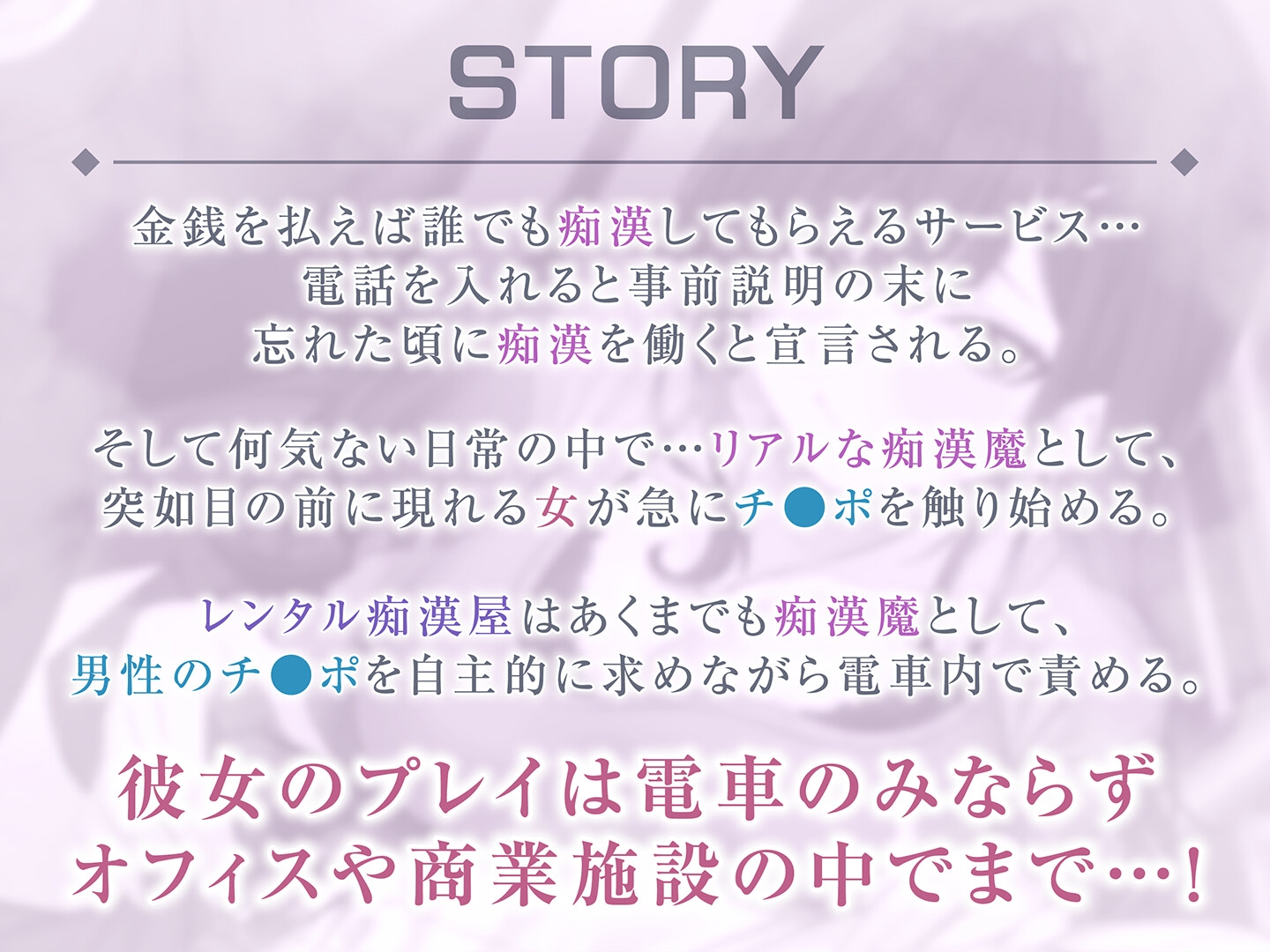 【DLsite専売ゲーム】【期間限定99円】レンタル痴○屋-あらゆる場所で射精させるヤリマンOL<KU100>(RJ01605915)内容まとめ【性為の戯れ】