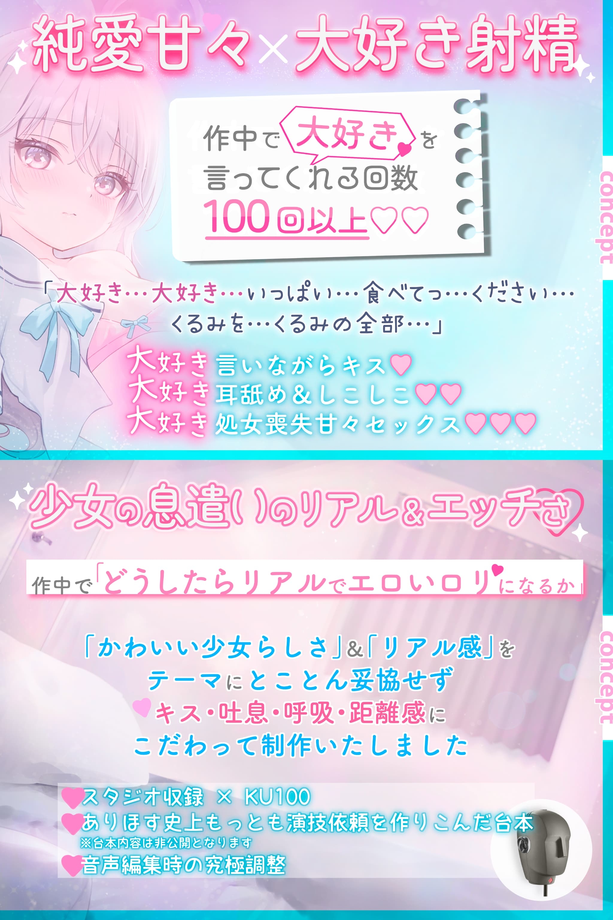 【DLsite専売ゲーム】【大好き100回超♡】純愛甘LOVE✨息遣い✨至近距離✨小さな年下天才少女の大好き…♡大好き…♡KISS✦しこしこ✦ぺろぺろ→超愛されセックス♡♡【恋するH音声♡2時間超】(RJ01606980)サンプル画像【ありすほすぴたる】