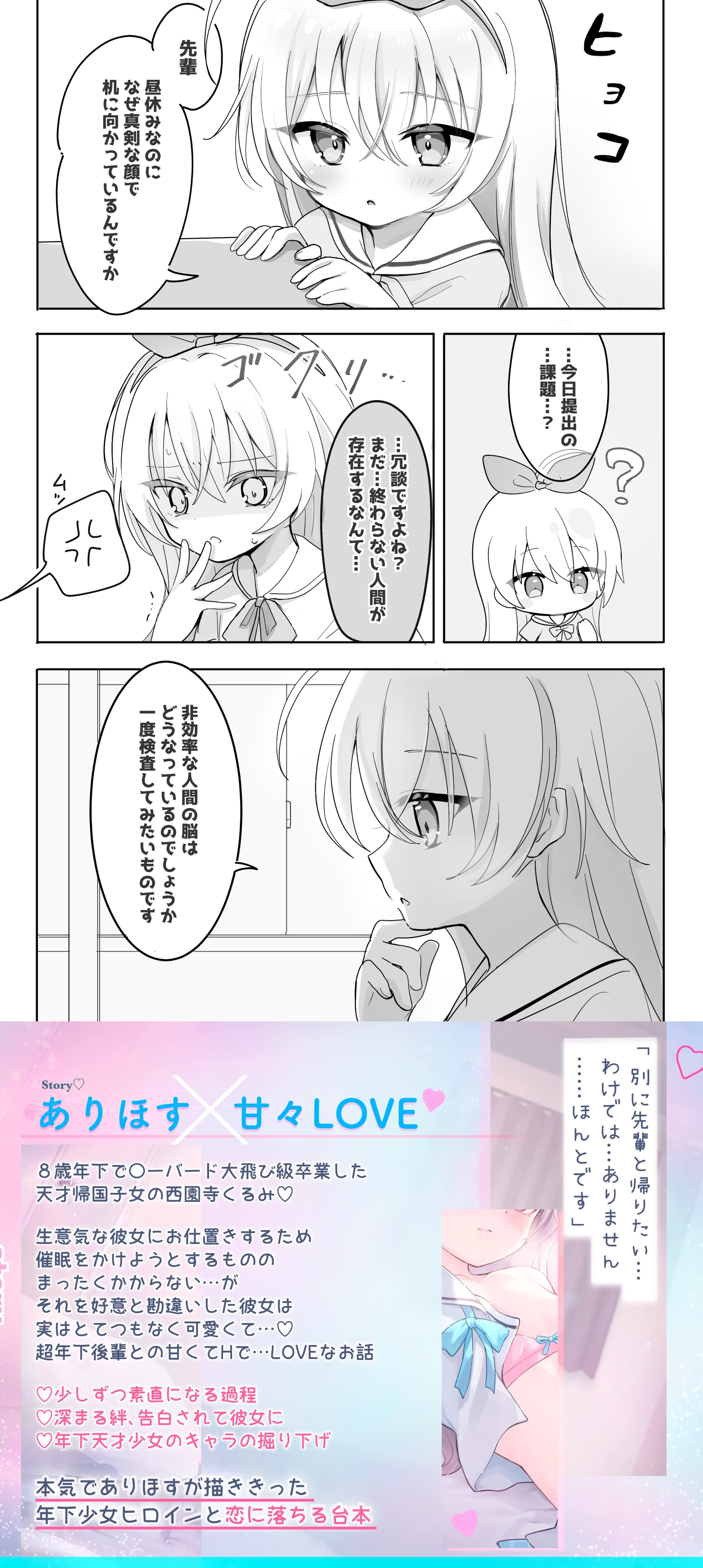 【DLsite専売ゲーム】【大好き100回超♡】純愛甘LOVE✨息遣い✨至近距離✨小さな年下天才少女の大好き…♡大好き…♡KISS✦しこしこ✦ぺろぺろ→超愛されセックス♡♡【恋するH音声♡2時間超】(RJ01606980)内容まとめ【ありすほすぴたる】