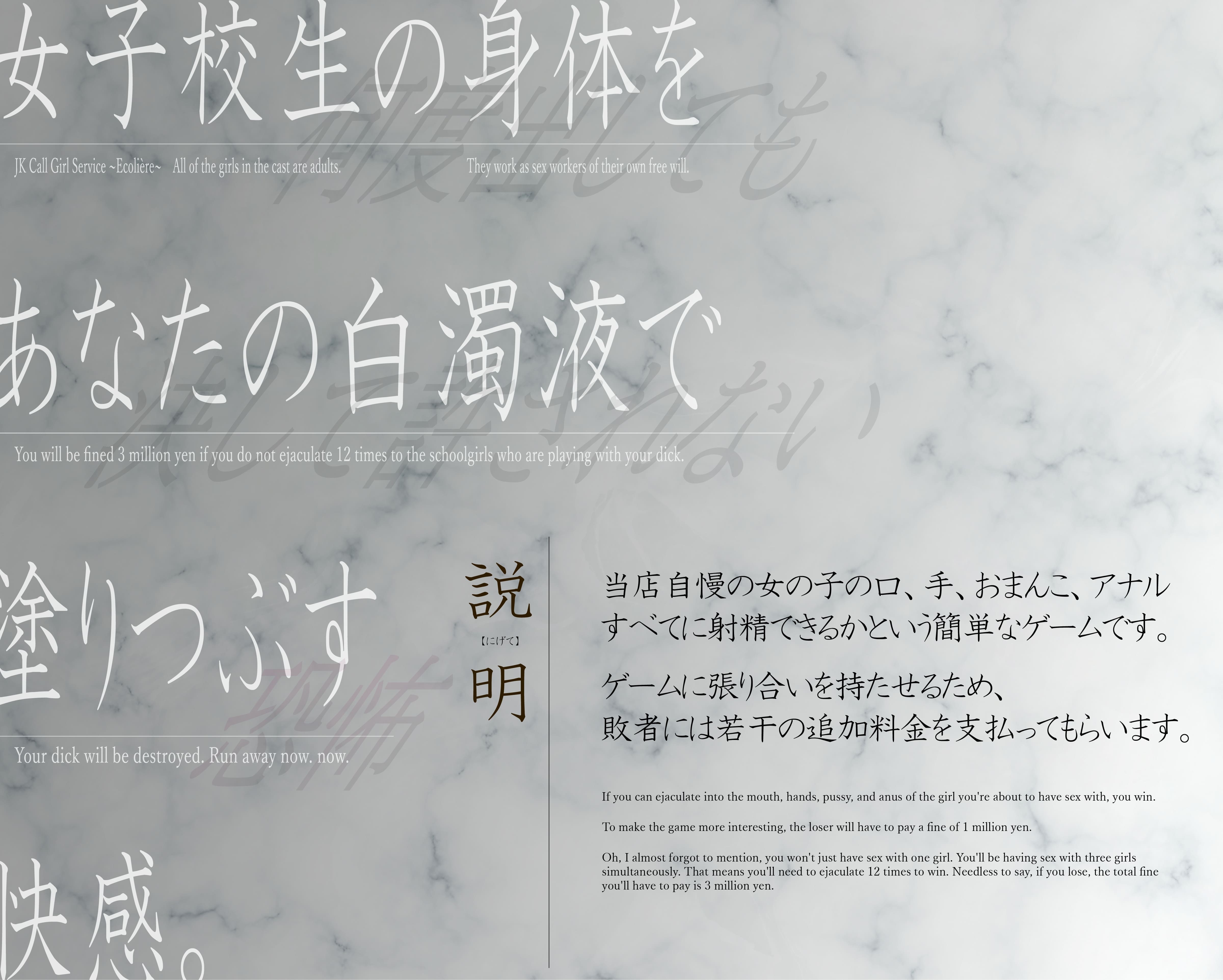 【DLsite専売ゲーム】【搾精ハーレム×JK】現役JK高級ヘルス ~エコリエール~ チンポを嫐るJKに12発の射精をしないと金も搾られる極悪ヘルス(RJ01608146)サンプル画像【とろねこサウンド】