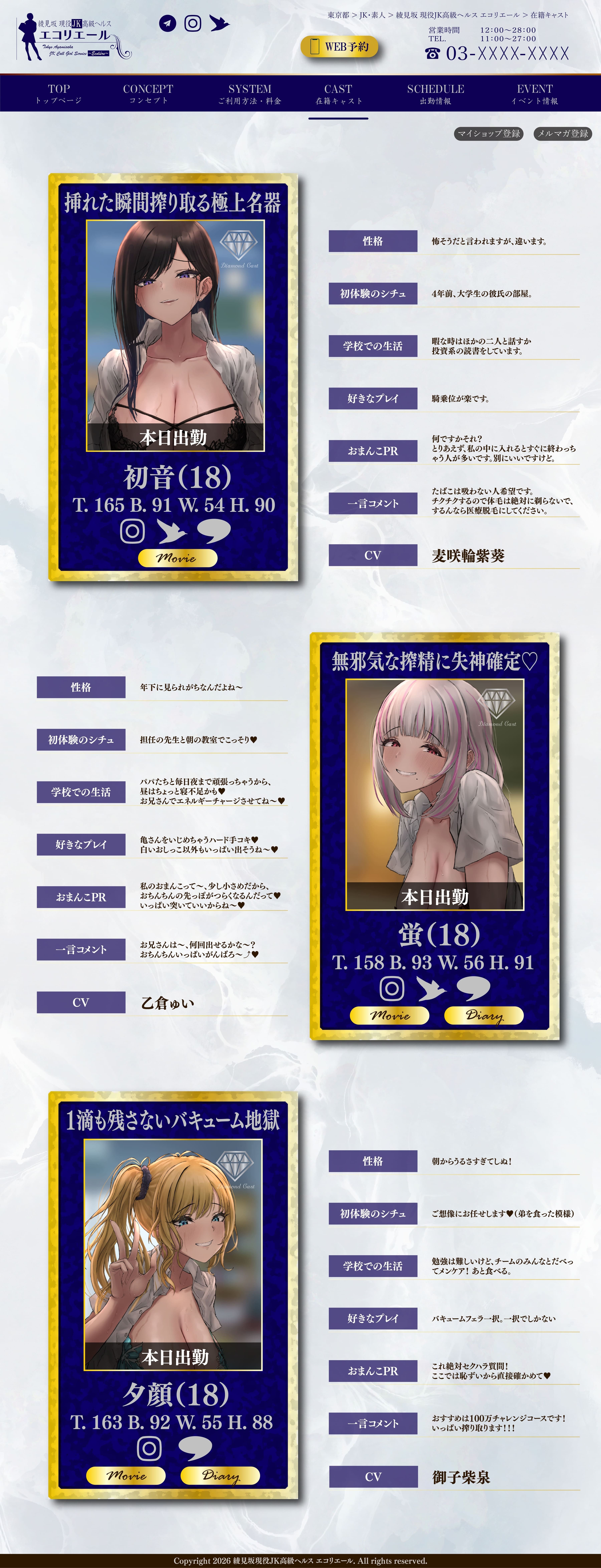 あなたのおちんぽを迎え入れる、当店のハイクラスJK達です