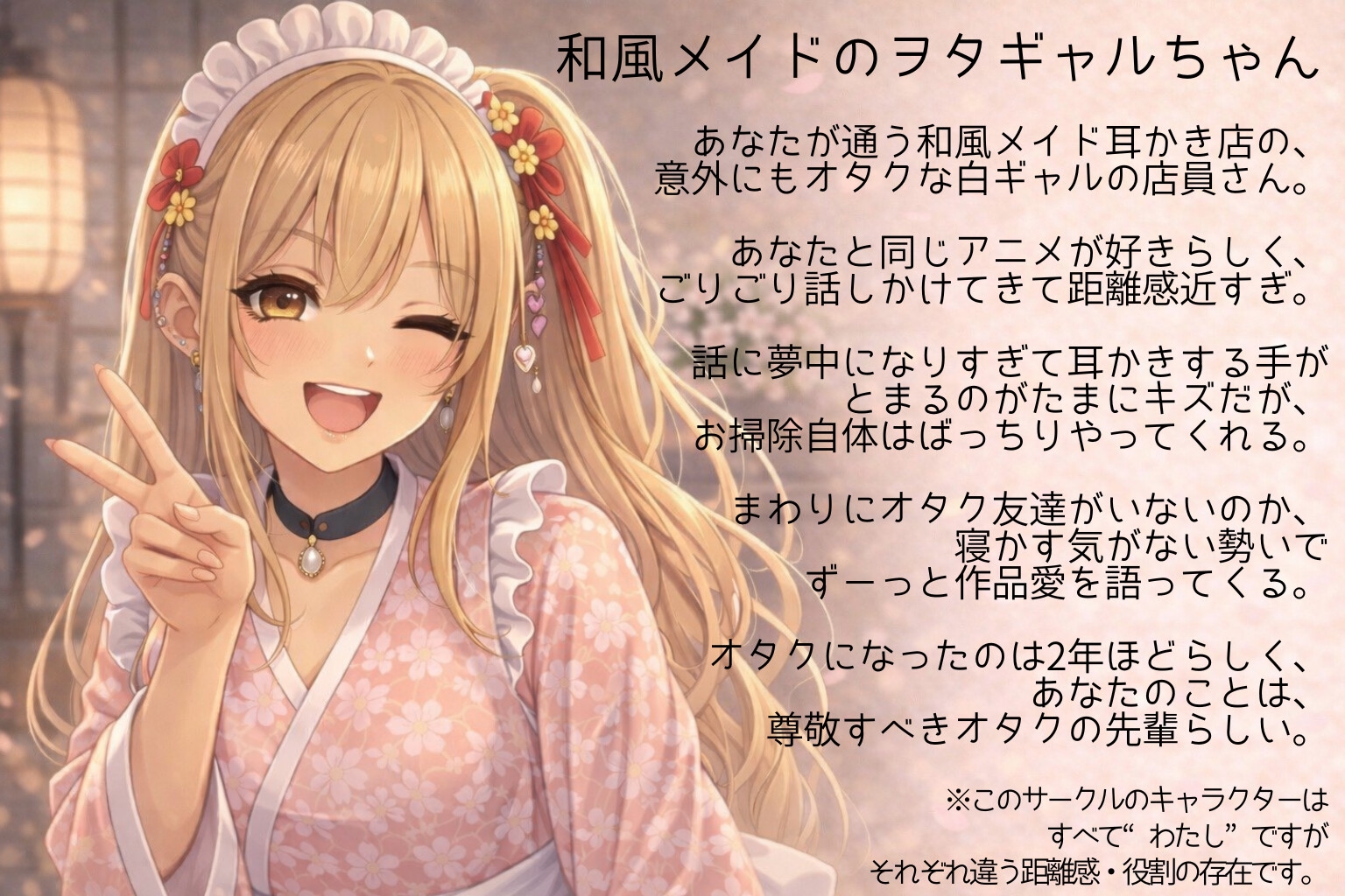 【タメ語接客✖️オタクギャル】和風メイドのヲタギャルちゃん指名してみた【耳かきASMR】(RJ01610161)はサークル名:甘月亭。のDLsite専売同人ボイス・ASMR作品です。